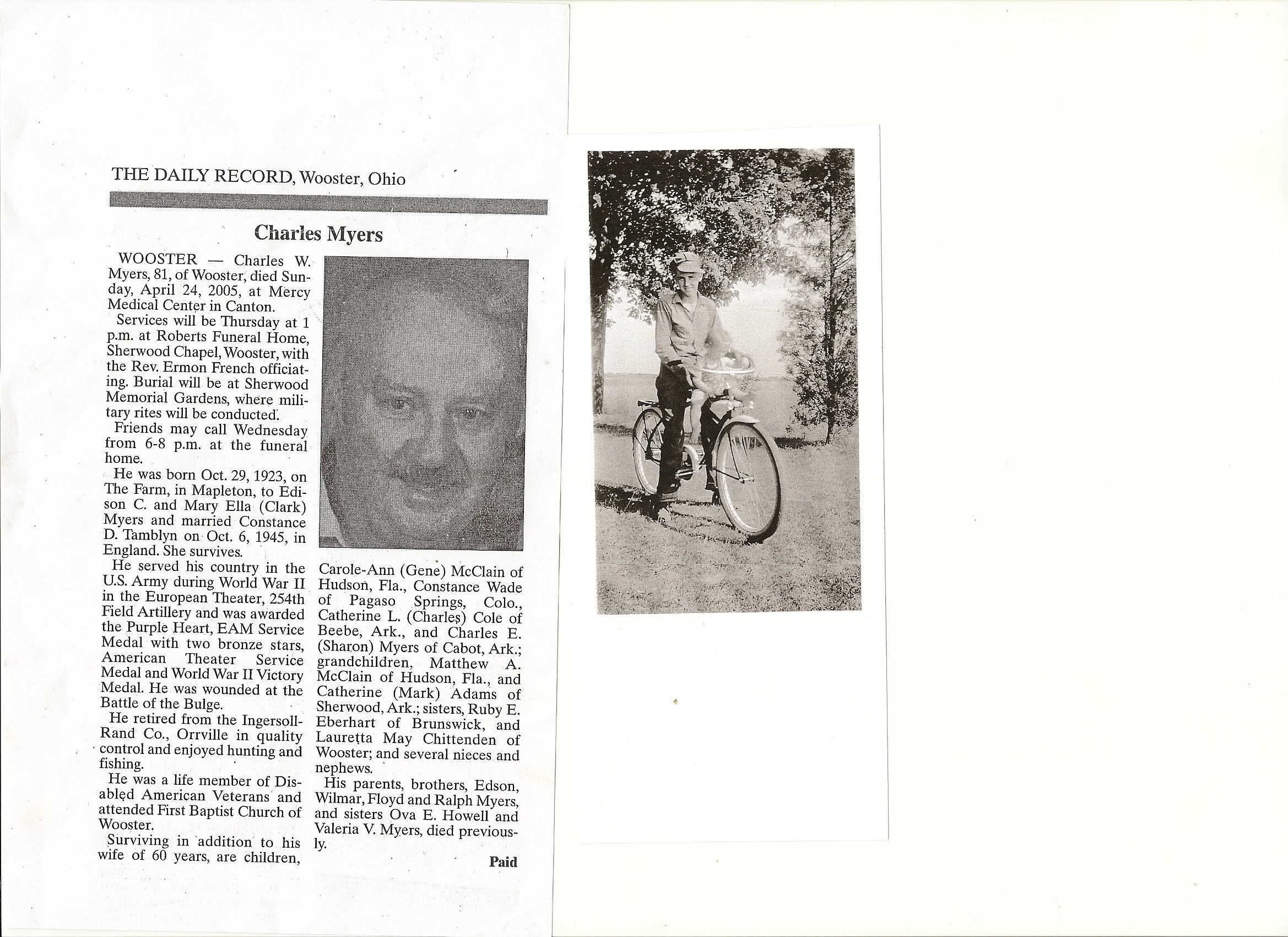 Charles Myers was my mother’s uncle, which would make him my grand-uncle. Not mentioned in his obituary, but told to me by my mother: he was on the beach at Normandy.