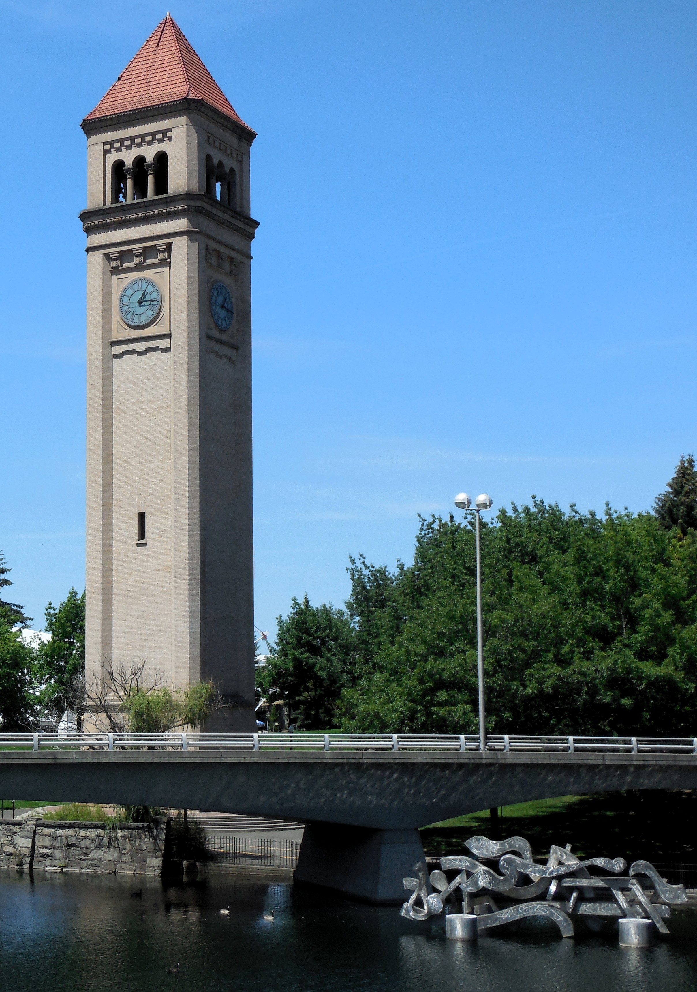 Since Sunday after breakfast was a slack day, I took a little time and walked downtown (a little less than a half-mile from the hotel). Spokane’s downtown is beautiful. Between the hotel and my ultimate destination there’s a lot of green space, a nice amusement park with children’s rides, a fountain for kids to play in, a lot of green space, and a few additional interesting things…