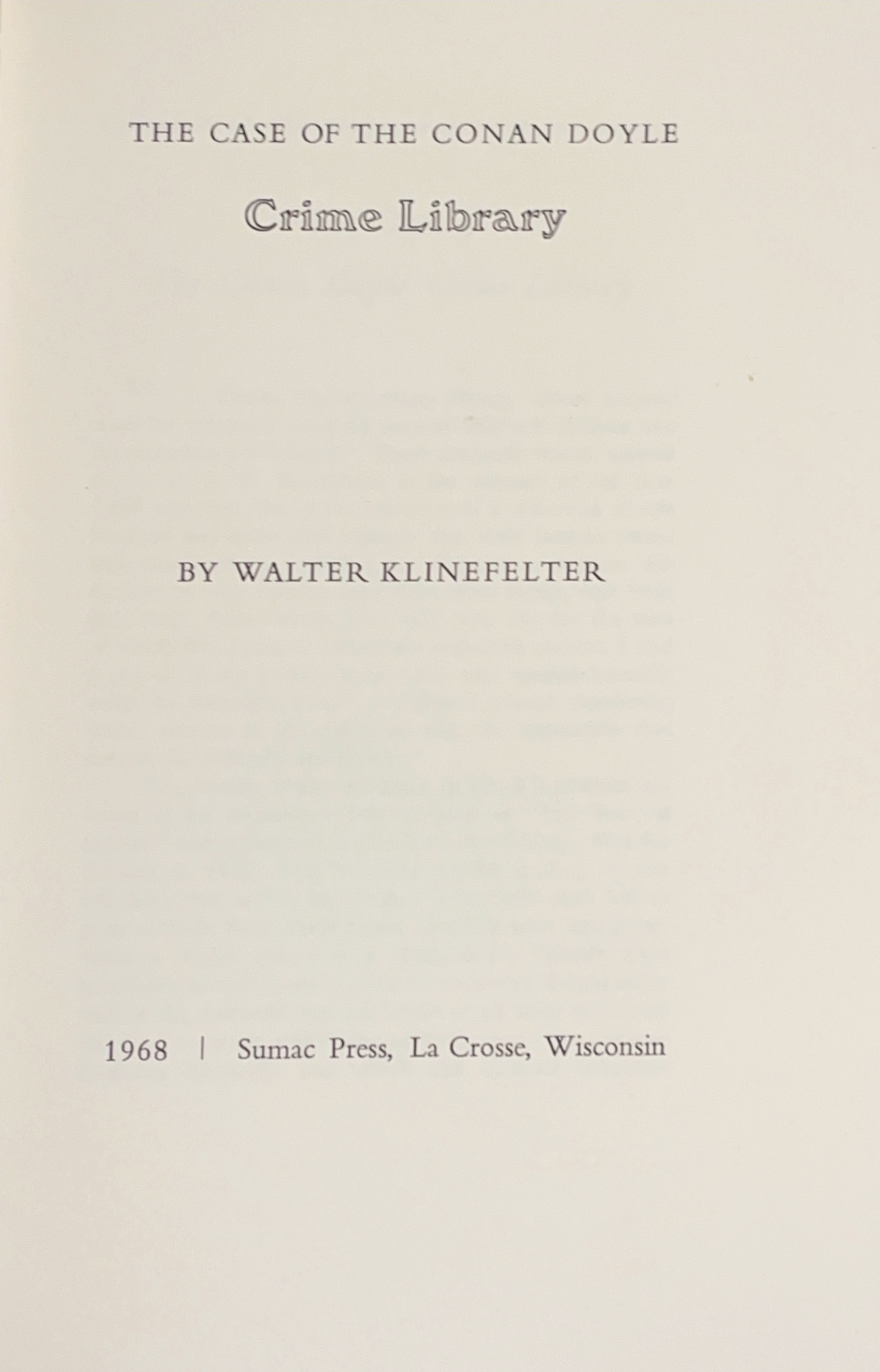 The Case of the Conan Doyle Crime Library, Walter Klinefelter. Sumac Press, 1968.