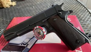 For those of you unfamiliar with the 1911, it was the standard US service pistol from 1911 until 1985. You’ve almost certainly seen it in some old WWII movie. If you’re still unfamiliar with it, check the link above.