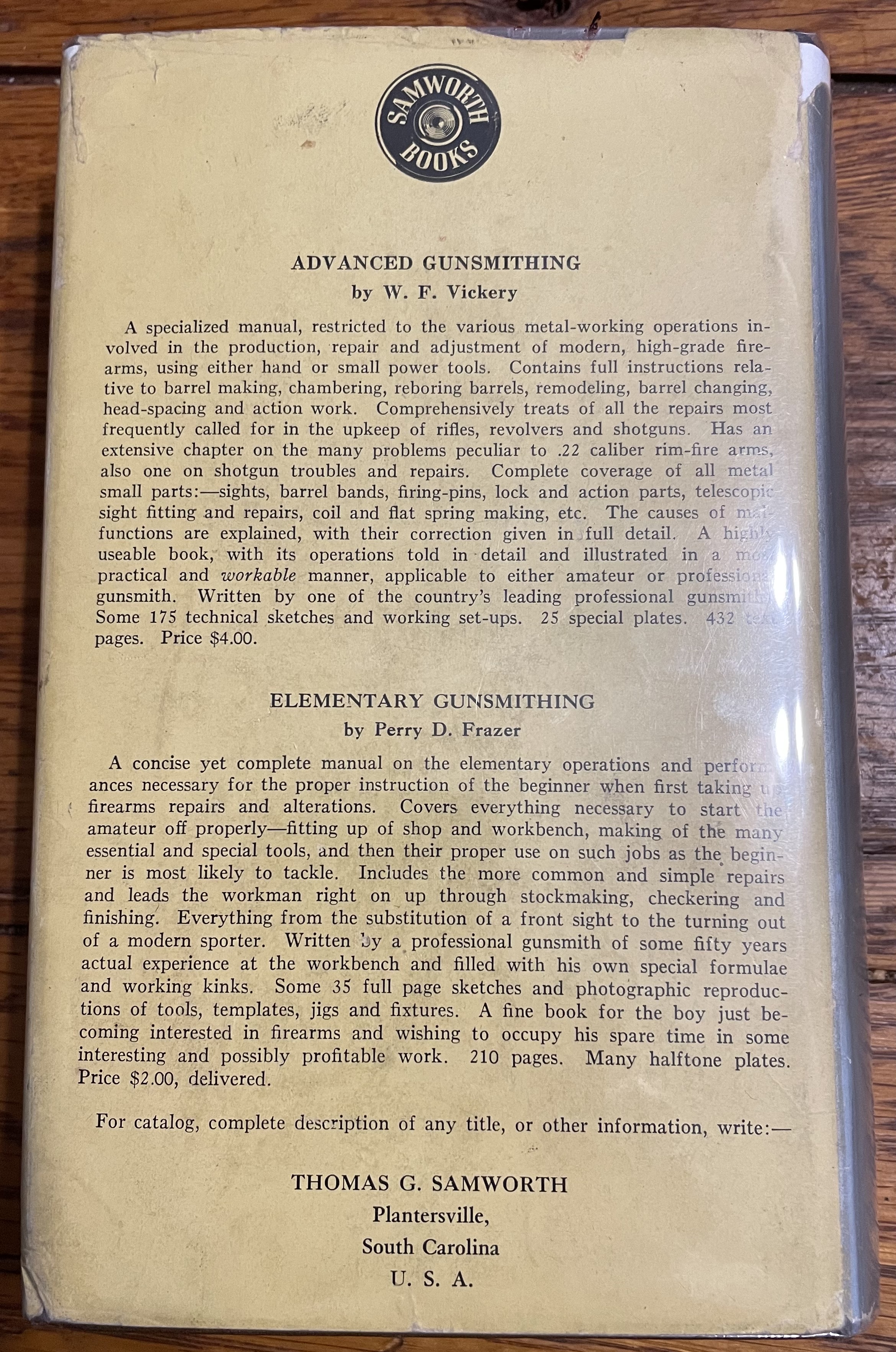 But it isn’t an obnoxious amount of wear, especially for an 80-year old book with the dust jacket. ABE currently lists two copies, one at $70 with no jacket, one at $100 with no jacket but signed by Mr. Samworth.