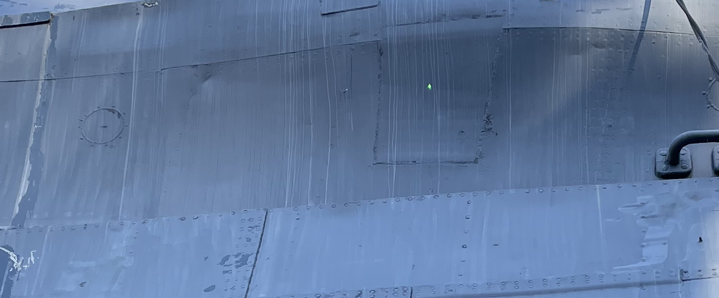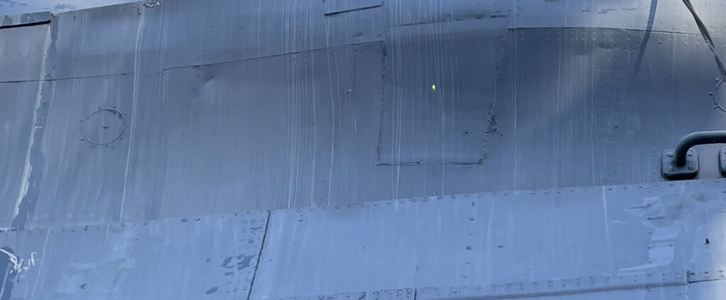 The green dot is from a laser pointer belonging to one of the tour guides. It shows where the Texas was patched.