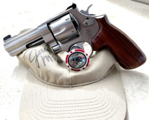 He used a 625 to set the 12 shots with a reload in 2.99 seconds record. I don’t think it was a 625-8 JM, as I believe that was introduced after he set the record. (The Standard Catalog says the 625-8 was introduced in 2001, as an engineering change that added the lock. It also says the 625 JM was introduced at SHOT in 2005.) But it was a 625, it was almost certainly modified by the Performance Center to his specifications, and he almost certainly had input into the design of the 625-8 JM.