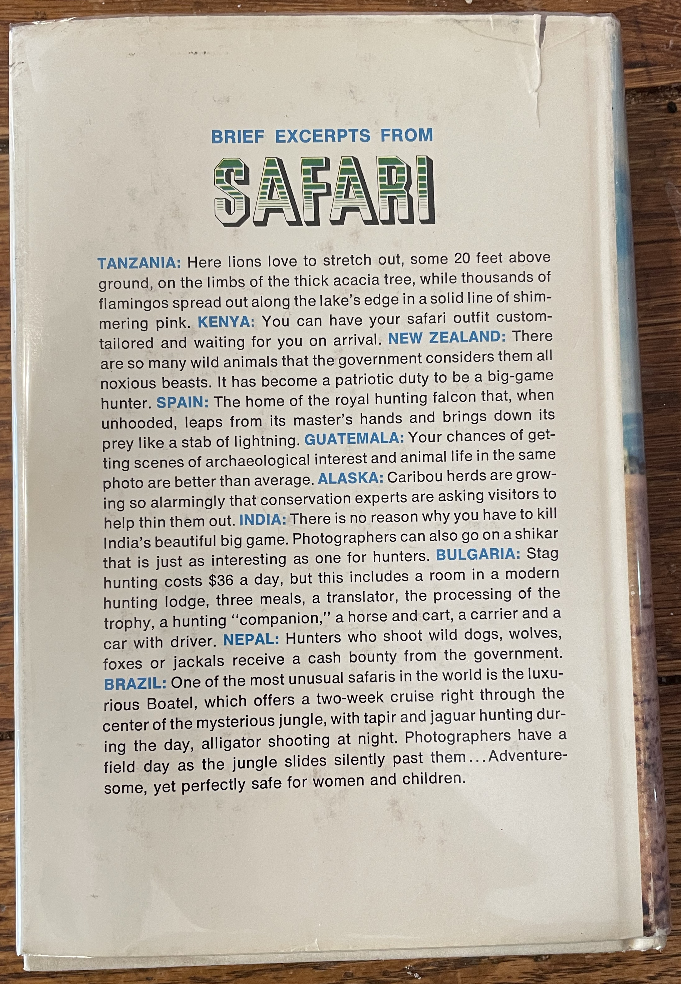 Safari: Pan Am’s Guide to Hunting with Gun and Camera Around the World, Charles A. Cabell III and David St. Clair. Doubleday, Garden City, NY, 1968.