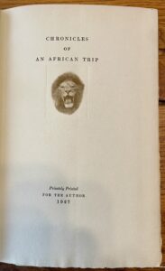Chronicles of an African Trip, George Eastman. Privately printed, 1927.