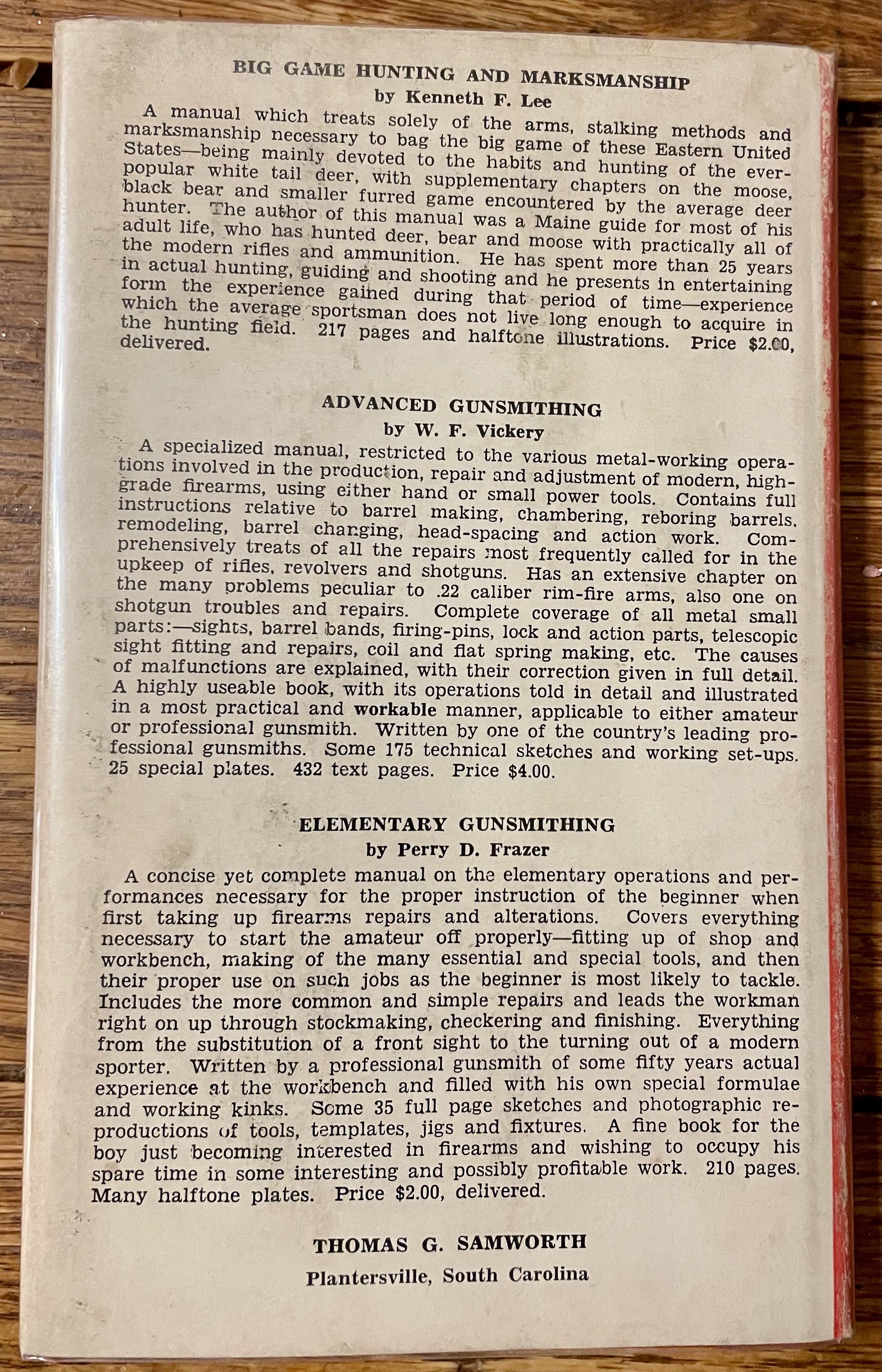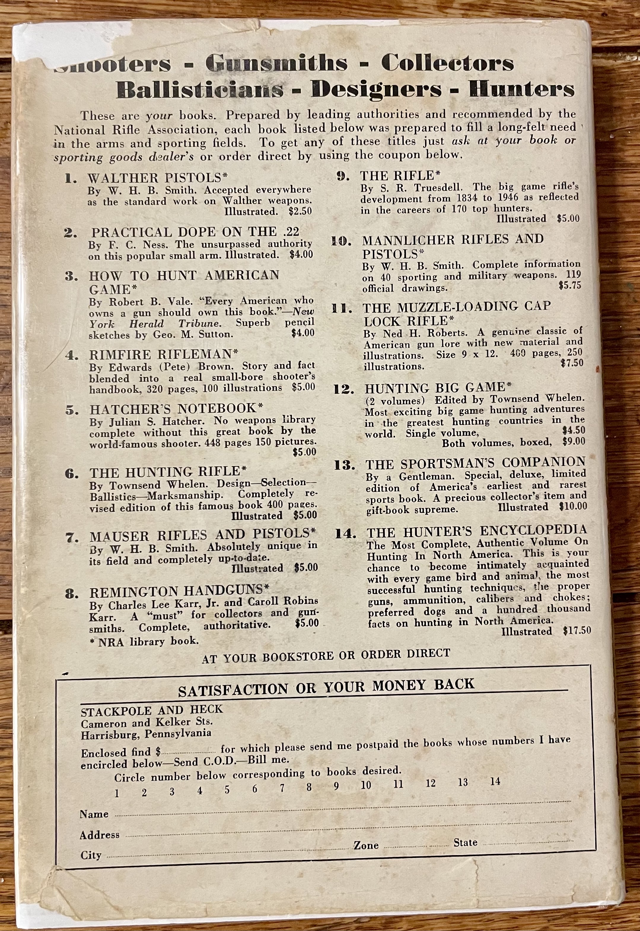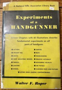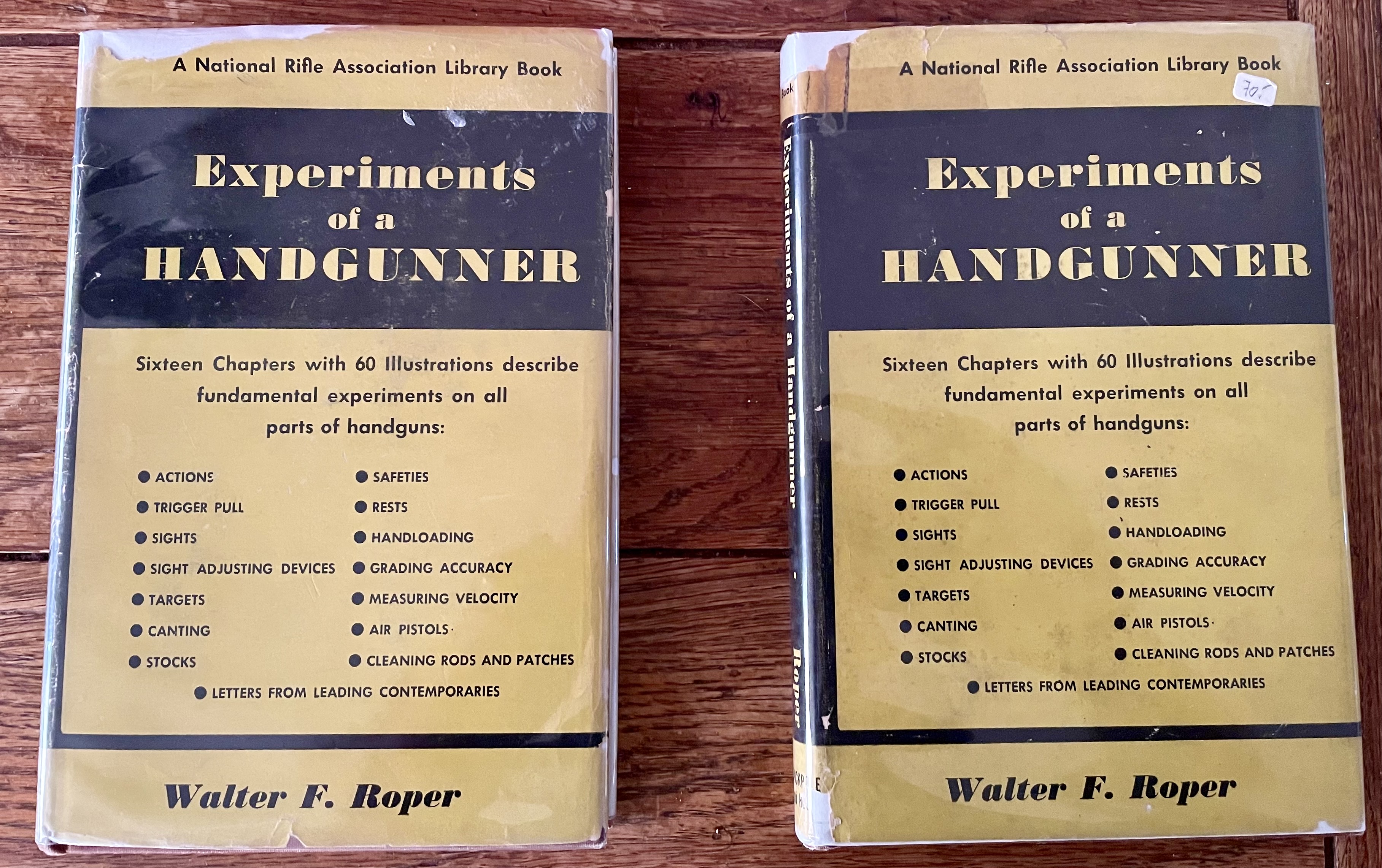 Experiments of a Handgunner, Walter F. Roper. Stackpole and Heck, New York and Harrisburg, 1949. Riling 2692. This supplements the copy I already have, and is in better shape. Not “spectacularly good”, but “a little better”, in my opinion. I’ll let you decide.