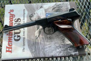 Ernest Hemingway famously claimed “…standing in one corner of a boxing ring with a [Woodsman], I will guarantee to kill either Gene Tunney or Joe Louis before they get to me from the opposite corner.” While I have serious doubts about Papa’s idea of the .22’s stopping power, Hemingway is known to have owned three (possibly four) Woodsman pistols, and almost certainly took one (maybe two) to Africa. Accounts say he used the Woodsman to shoot scorpions and jackals, and perhaps to give the coup de grâce to wounded animals.