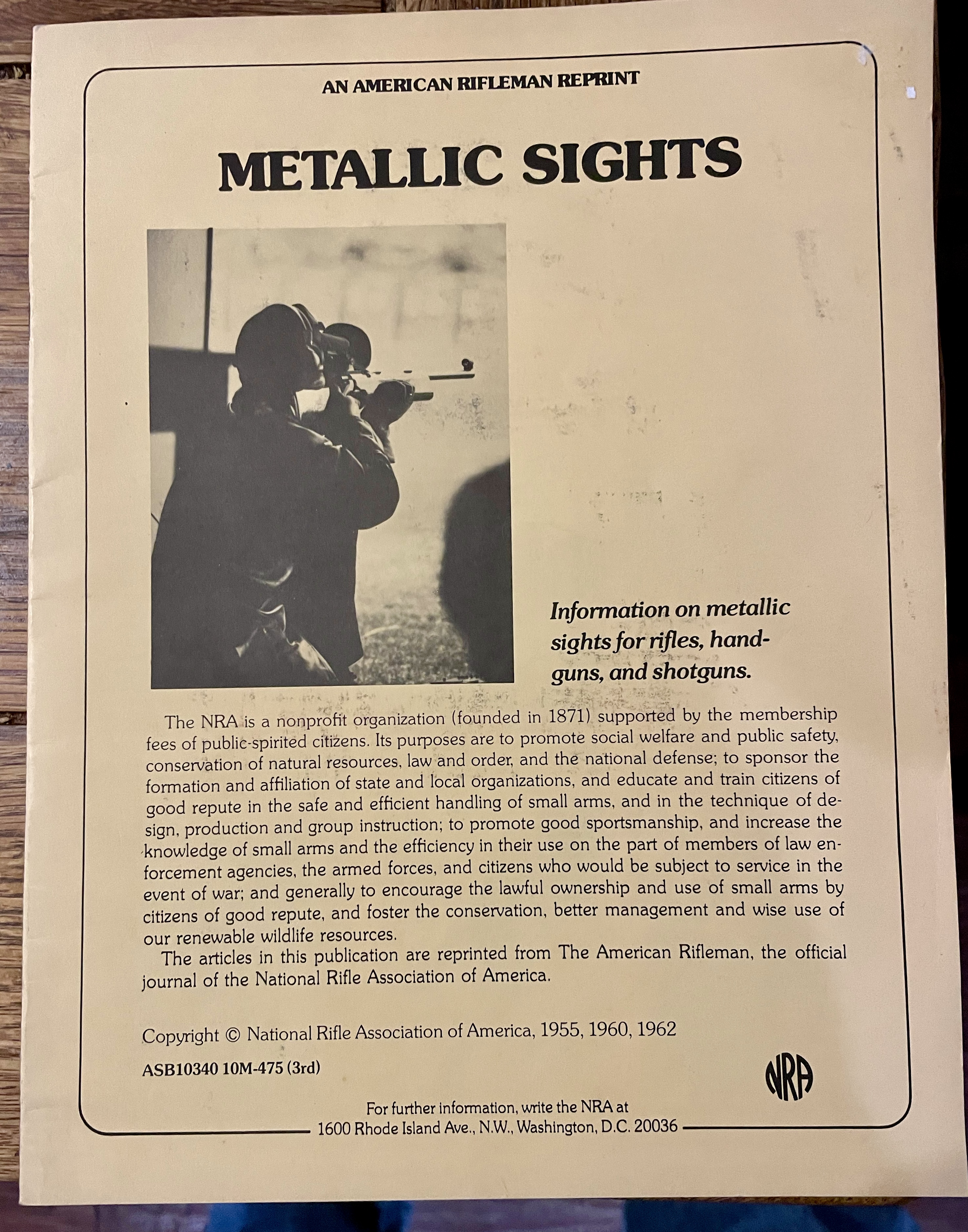 An American Rifleman Reprint: Metallic Sights, National Rifle Association, Washington, DC, 1962.