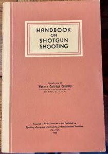 A bit of ephemera. 144 pages on shooting the shotgun, both at clay targets and at game, published by one of the major manufacturing organizations. This is a fourth printing, so I think it was fairly popular. I believe this was subsidized by the members of SAAMI (“Compliments of Western Cartridge Company”) and probably sent out to anyone who wrote in and enclosed a SASE. Which was the style at the time.