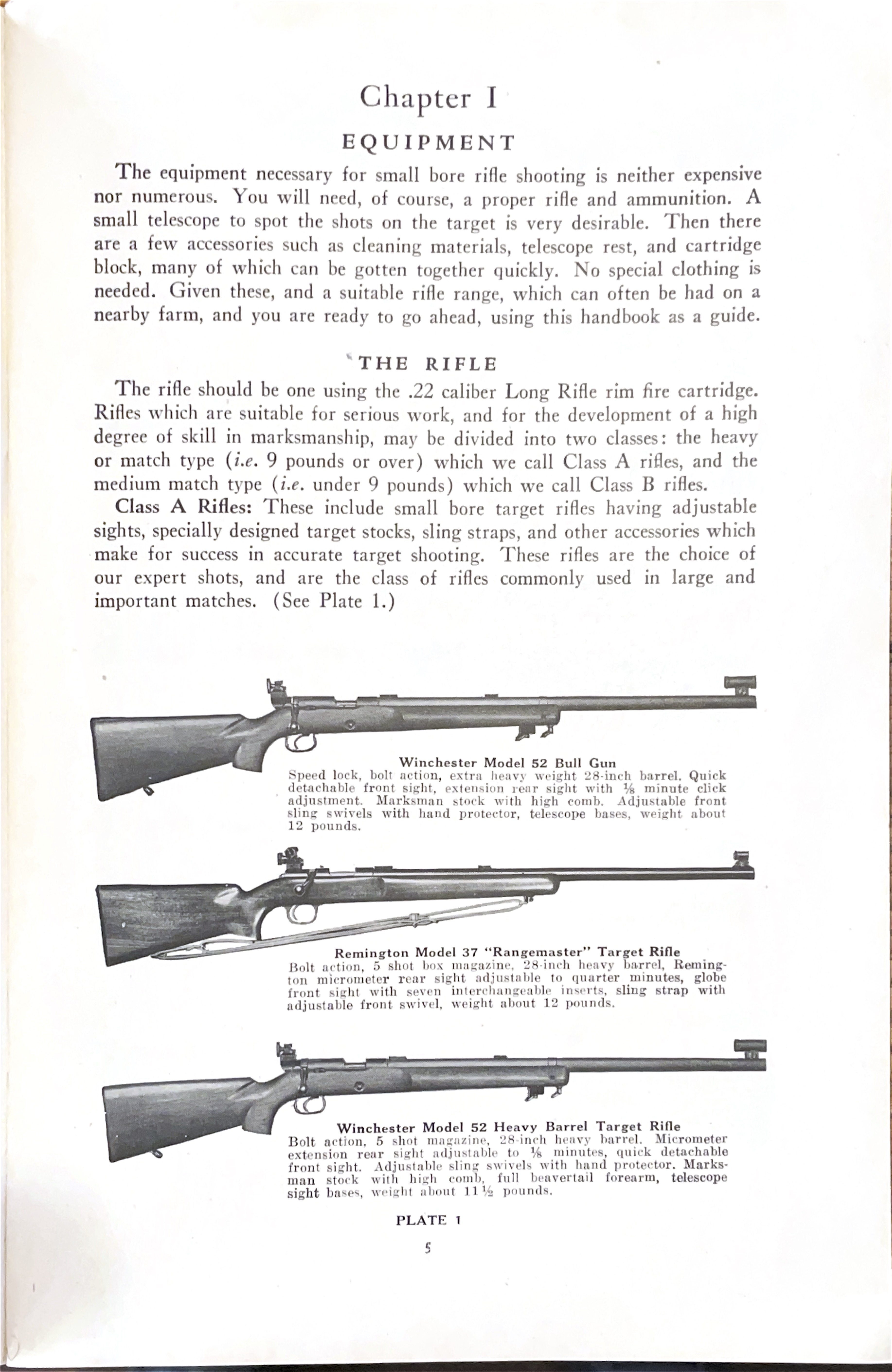 Per Riling, this was first published by SAAMI in 1936 under the title Small Bore Rifle Handbook, revised in 1937, and the title changed in 1938. This is the eleventh edition per the inside matter, with a “total printing to date 300,000”. From what I’ve read elsewhere, small bore rifle shooting became a big thing during the depression and continued on post-war. Small bore shooting was cheaper and required less land than centerfire/high-power shooting.
