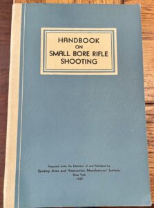 Handbook on Small Bore Rifle Shooting, Col. Townsend Whelen. Sporting Arms and Ammunition Manufacturers Institute, New York, 1947. Riling 2210. Also in Biscotti.