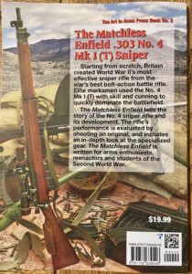 The Matchless Enfield .303 No. 4 MK I (T) Sniper: And Britain’s Elite Force of Scout/Snipers Who Dominated WWII Battlefields, Jeff John. Art in Arms Press, no city, 2019.