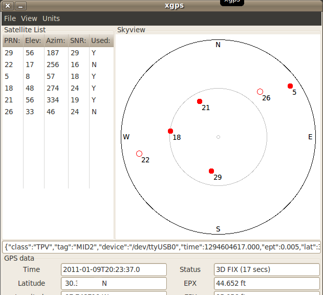 Looks like we’re getting something there. How about we fire up gpsd and xgps?