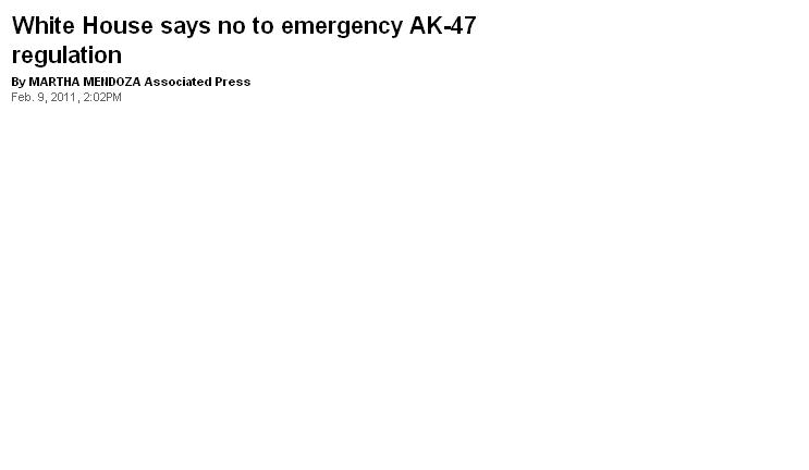 This entry was posted on Wednesday, February 9th, 2011 at 3:21 pm and is filed under Clippings, Guns. You can follow any responses to this entry through the RSS 2.0 feed. Both comments and pings are currently closed.