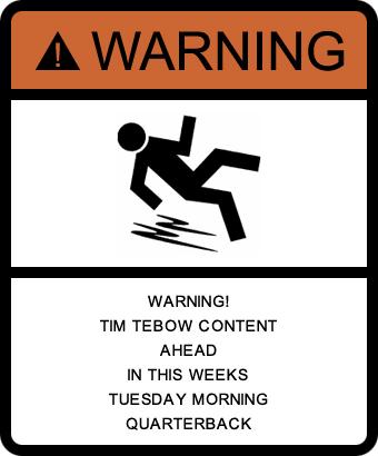 For people who can’t stand Tebow hype: you can now skip the first 582 words of this week’s column. For Tebow fans or those indifferent to Tebow: “…football is a team game”. (Thank you, Captain Obvious.) “God does not care who wins football games.” And with those two points made, you can now skip the first 582 words of this week’s column.