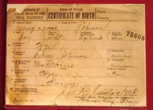 Lyndon Johnson’s birth certificate is on display at his presidential library. Insert your own Barack Obama joke here.